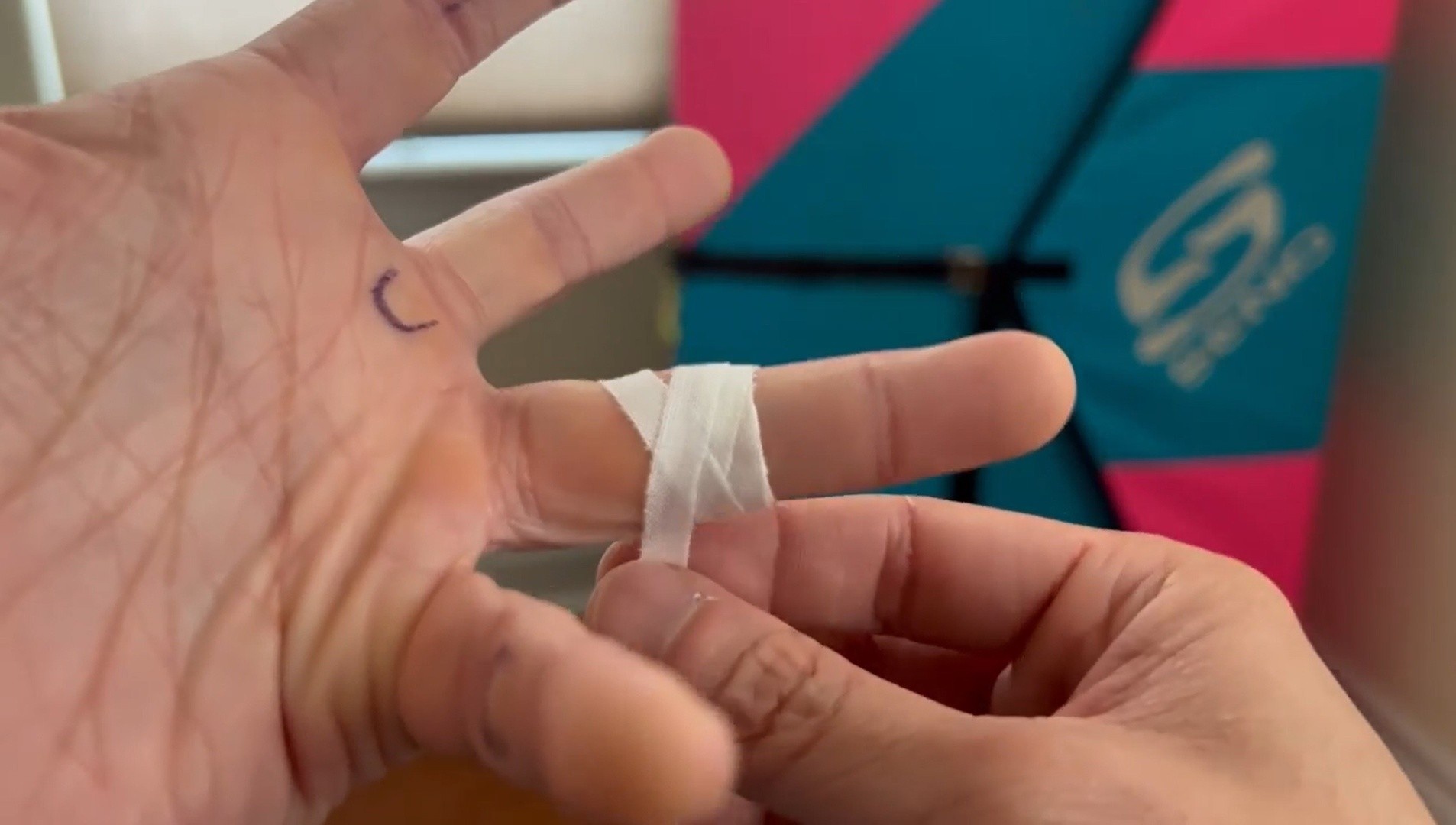 Taping Flappers on Finger